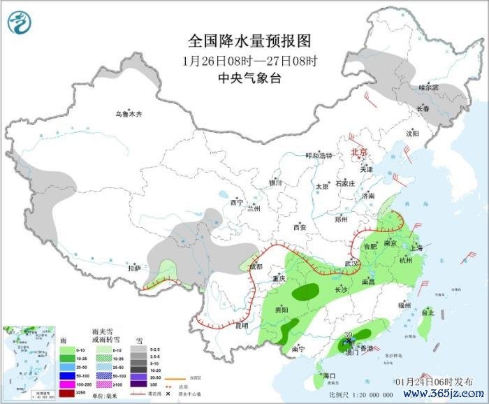 全国降水量预报图(1月26日08时-27日08时) 图片均来自中央气象台网站中岩投资