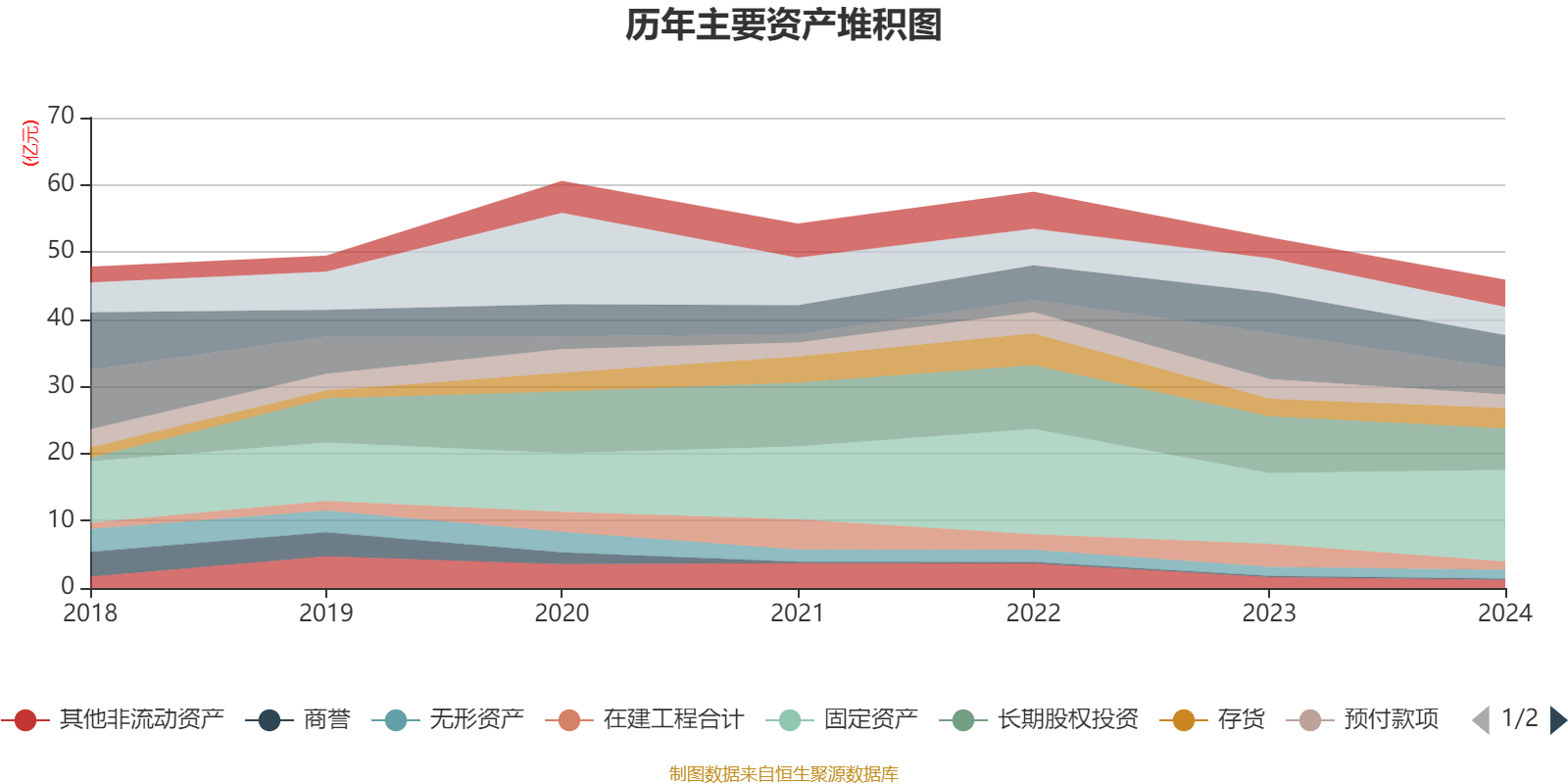 资产重大变化方面,截至2024年末,公司固定资产较上年末增加29.58%,占公司总资产比重上升9.6个百分点;其他应收款(含利息和股利)较上年末减少42.75%,占公司总资产比重下降4.63个百分点;在建工程合计较上年末减少64.37%,占公司总资产比重下降3.89个百分点;长期股权投资较上年末减少27.38%,占公司总资产比重下降2.81个百分点。
