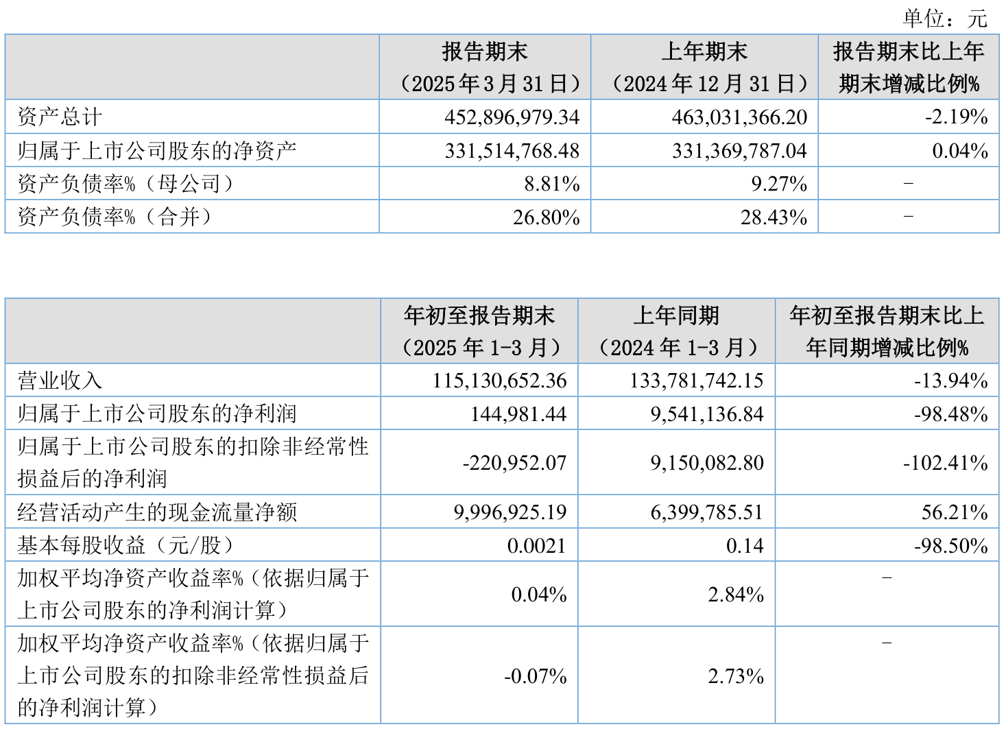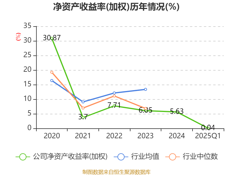 盈利能力方面, 2025年一季度公司加权平均净资产收益率为0.04%,同比下降2.8个百分点。公司2025年第一季度投入资本回报率为0.05%,较上年同期下降2.68个百分点。
