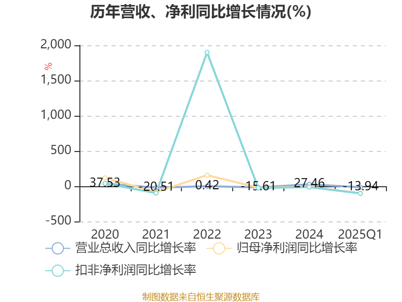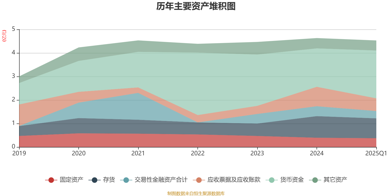 资产重大变化方面,截至2025年一季度末,公司货币资金较上年末增加24.37%,占公司总资产比重上升9.59个百分点;应收票据及应收账款较上年末减少34.63%,占公司总资产比重下降5.92个百分点;交易性金融资产合计较上年末减少25.7%,占公司总资产比重下降2.19个百分点;存货较上年末减少8.19%,占公司总资产比重下降1.22个百分点。