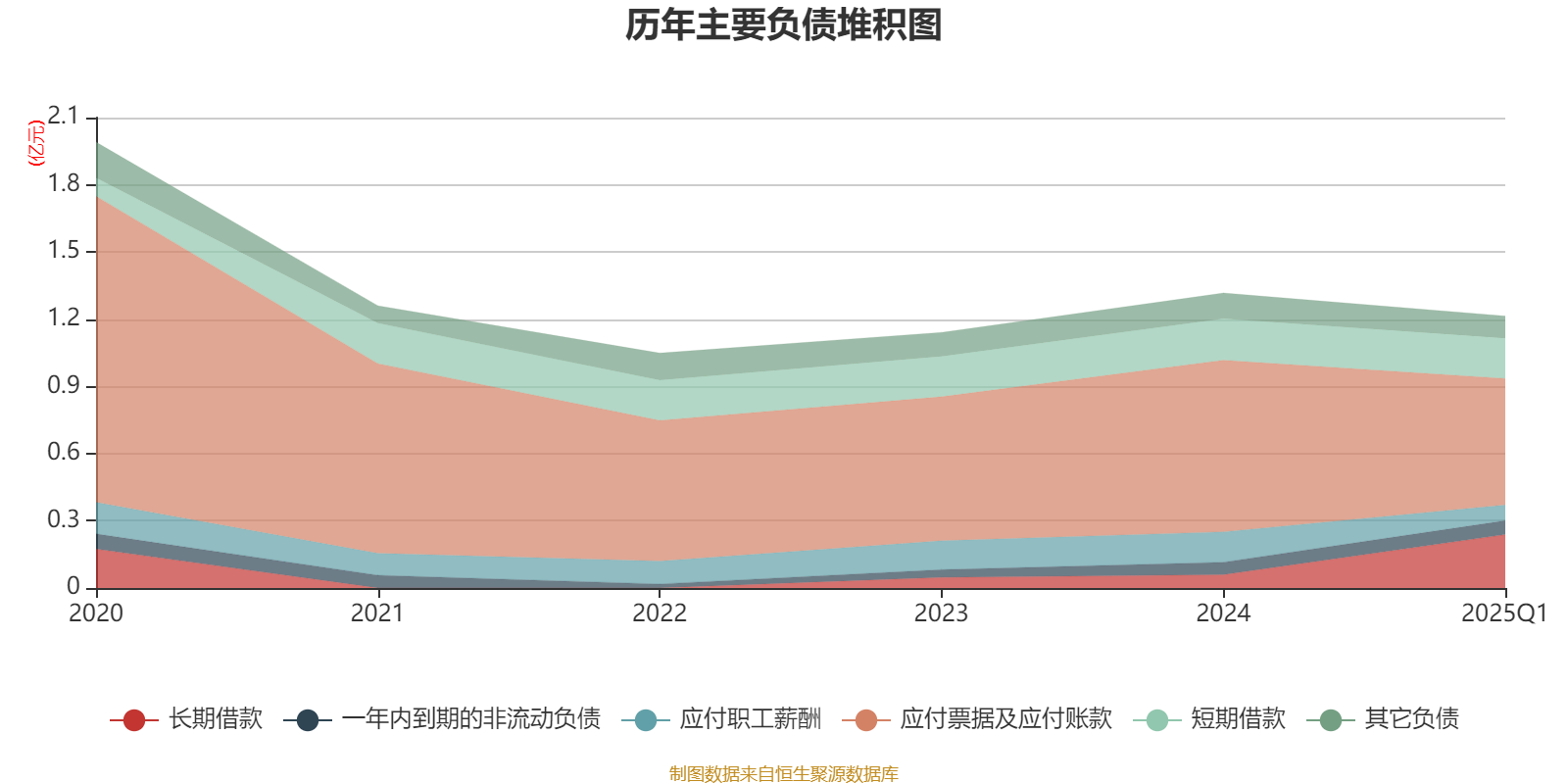 负债重大变化方面科云汇,截至2025年一季度末,公司应付票据及应付账款较上年末减少26.36%,占公司总资产比重下降4.09个百分点;长期借款较上年末增加302.03%,占公司总资产比重上升3.97个百分点;应付职工薪酬较上年末减少48.62%,占公司总资产比重下降1.39个百分点;一年内到期的非流动负债较上年末增加12.1%,占公司总资产比重上升0.18个百分点。