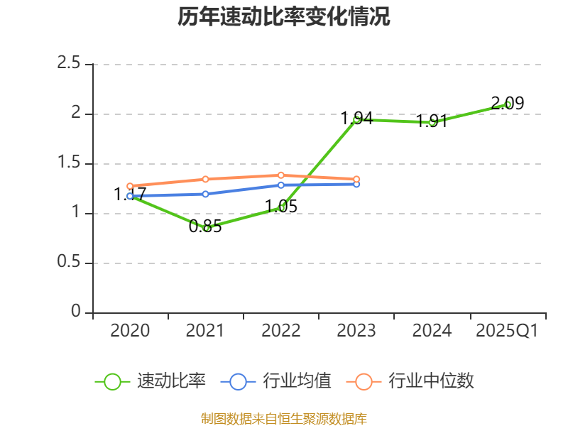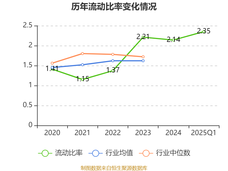 2025年第一季度,公司流动比率为2.35,速动比率为2.09。