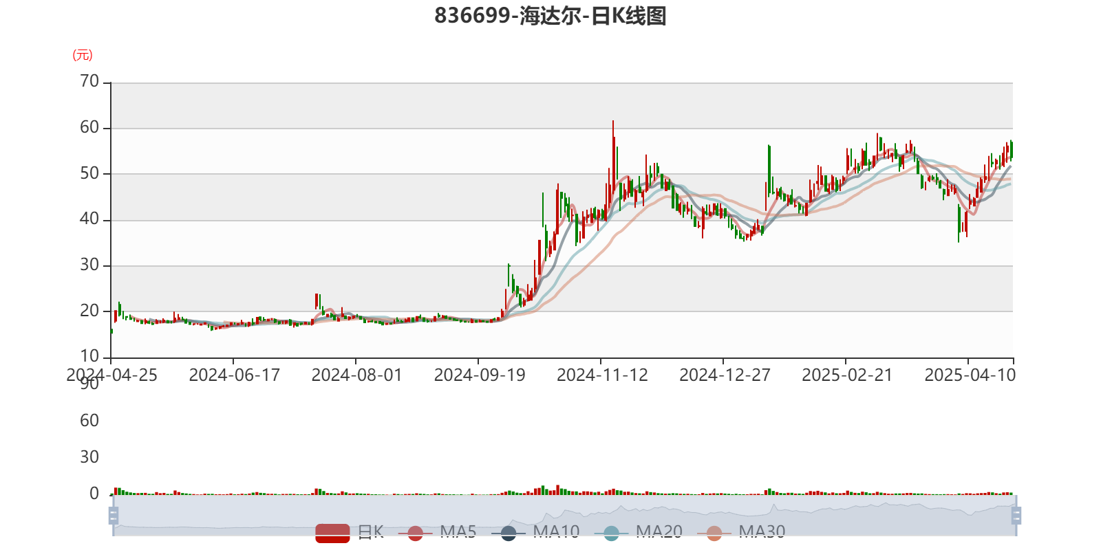 以4月25日收盘价计算,海达尔目前市盈率(TTM)约为28.97倍,市净率(LF)约7.49倍,市销率(TTM)约5.81倍。
