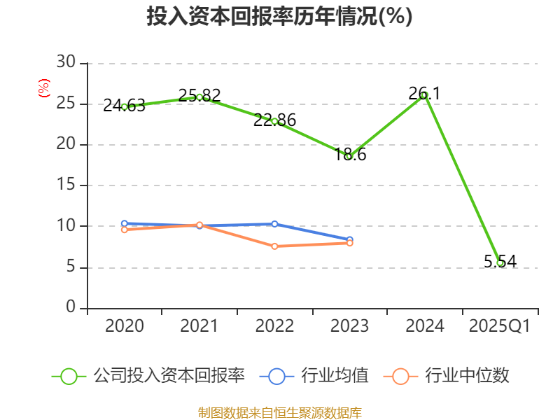 盈利能力方面, 2025年一季度公司加权平均净资产收益率为6.06%,同比下降0.02个百分点。公司2025年第一季度投入资本回报率为5.54%,较上年同期下降0.12个百分点。