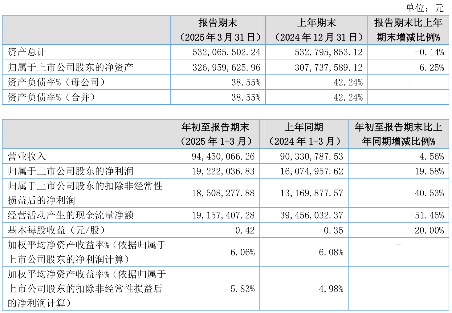 负债重大变化方面,截至2025年一季度末,公司短期借款较上年末减少31.39%,占公司总资产比重下降1.54个百分点;应付票据及应付账款较上年末减少4.47%,占公司总资产比重下降0.86个百分点;应付职工薪酬较上年末减少64.74%,占公司总资产比重下降0.72个百分点;应交税费较上年末减少40.58%,占公司总资产比重下降0.31个百分点。