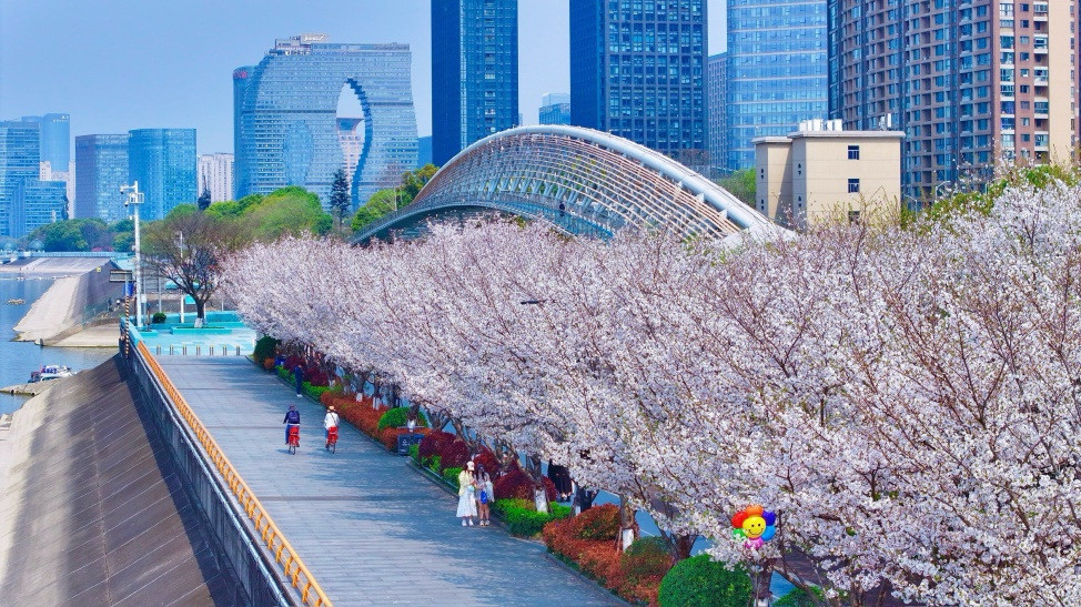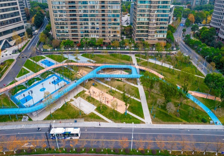 三是文化赋能,实现经济增效。项目深度融入文化元素,在亚运运动公园中布局大量运动主题设施、设备,展现亚运风采,呼应亚运文化;对工匠博物馆进行专题打造,与大国工匠茅以升的钱江一桥,遥相呼应,集中展示滨江区工匠精神,工匠文化;通过对海塘公园的全面提升改造,打造钱塘江亲水平台,近距离感受钱塘江,品味海塘文化。同时,串联起文化、旅游、体育资源,通过马拉松、樱花跑等各项体育活动,以大文化构建大服务,进一步提升产业附加值。